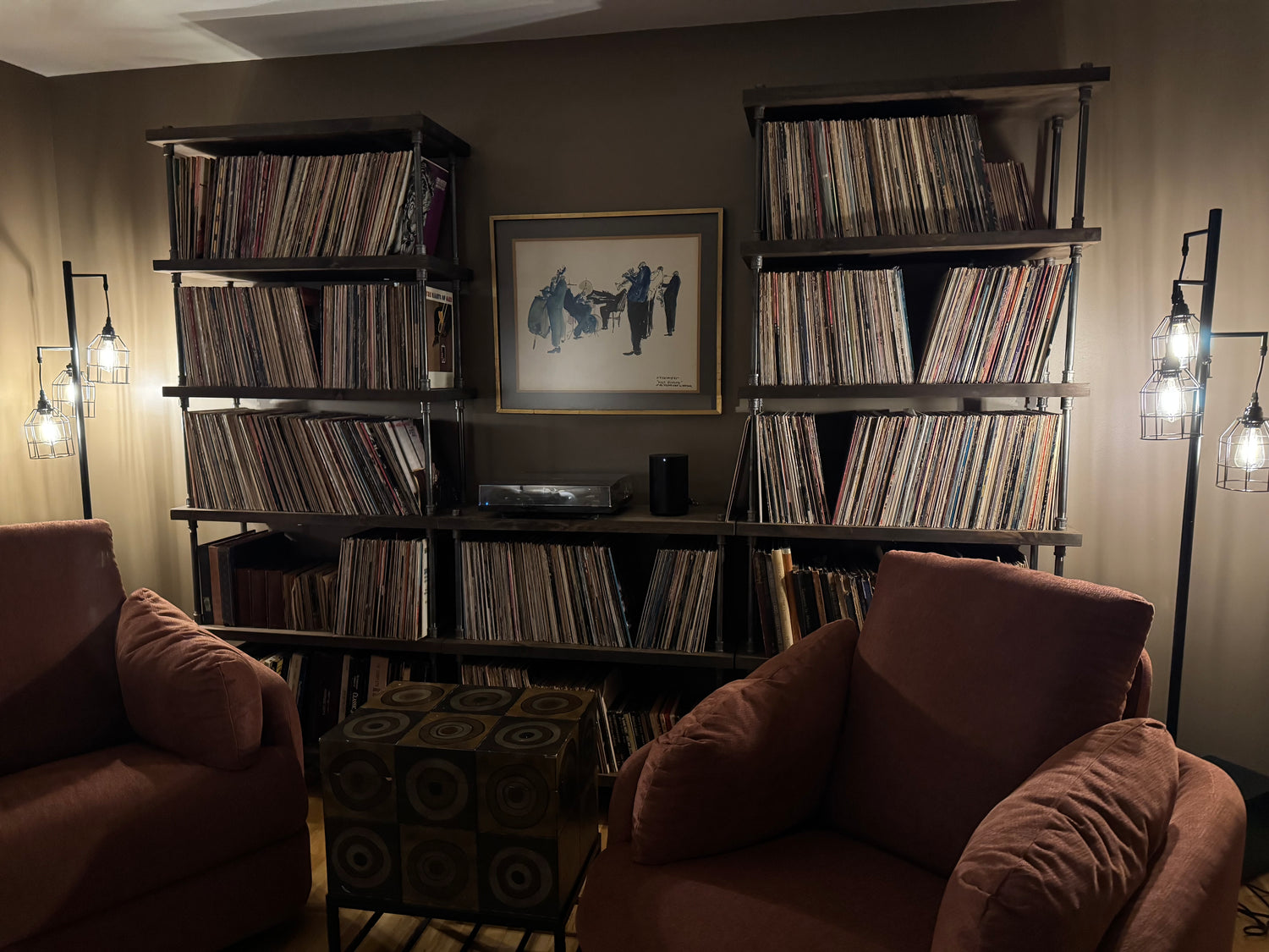 Bookcase looks incredible in my home office. The industrial piping is a great touch, and really makes the wood pop.